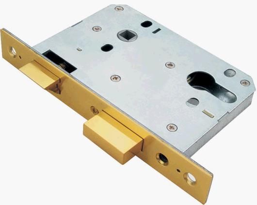 顾名思义,此种锁体就是锁门的同时(如图所示有天地杆),由锁体传动装置带动上锁点和下锁点(分别在门页上边缘与下边缘),再加上如图左边的这四个圆柱状的锁点,在锁门时,可以锁上门的三面,加上门合页四方都有将门页与门框锁在一起,这样有很好的防撬、防撞功能。